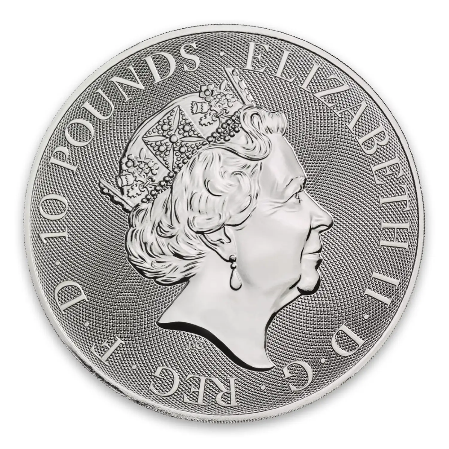 The obverse displays Queen Elizabeth II along with the face value of ten pounds.