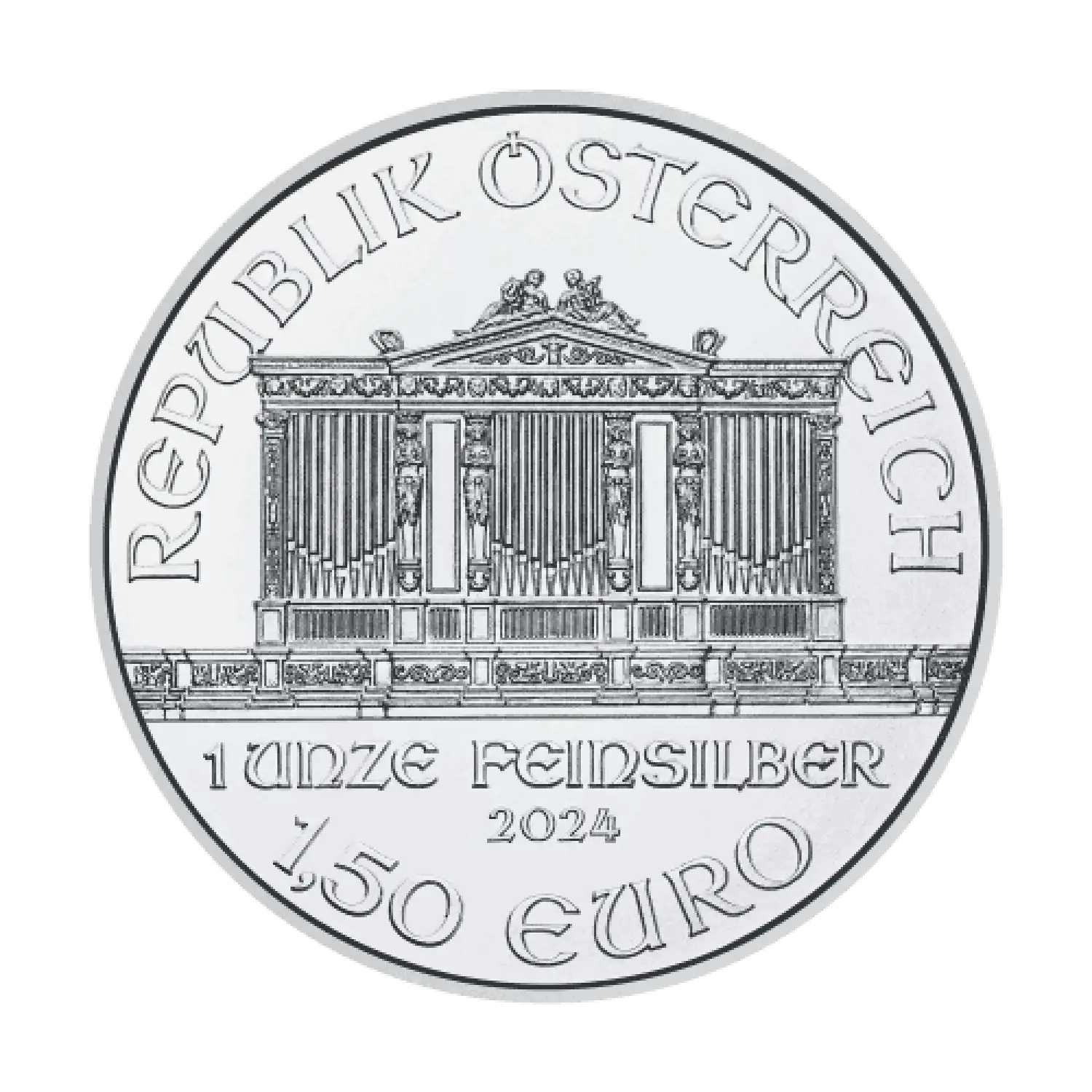 The Austrian Silver Vienna Philharmonic is a silver coin produced by the Austrian Mint. It is the most popular silver bullion coin in Europe. The coin is legal tender in Austria with a face value of 1.50 Euros. It weighs exactly 1 troy ounce of .999 fine silver. This Austrian Philharmonic silver coin has a beautiful design and is popular among all collectors and investors alike.