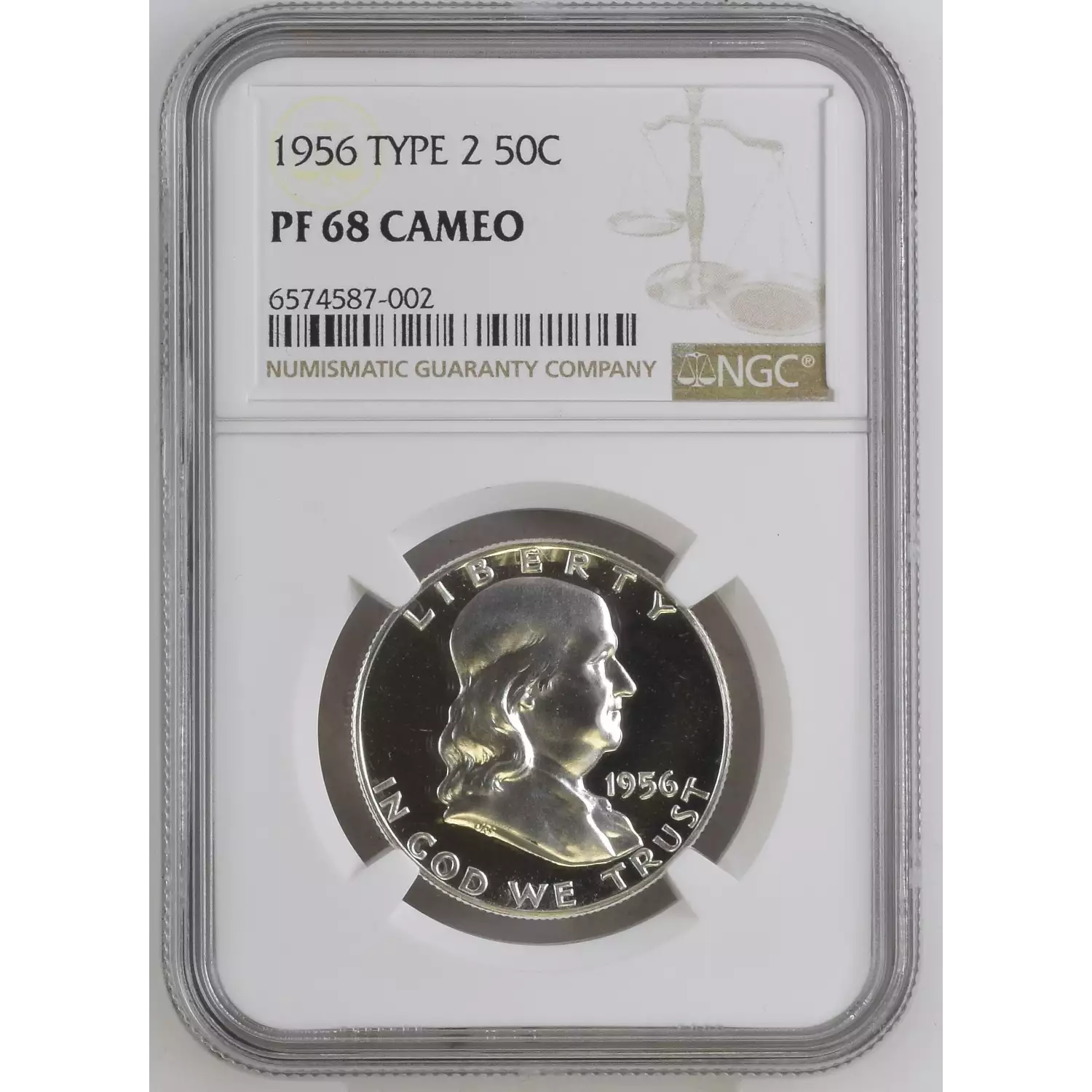 1956 Half Dollars Franklin NGC PF-68 CAMEO Sight White